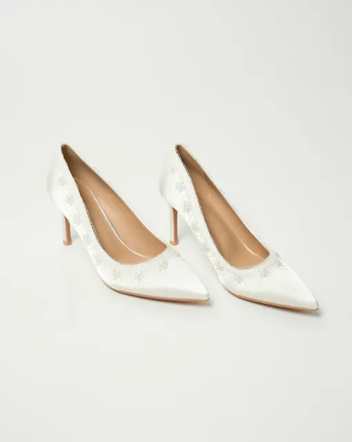 Лаковые лодочки в молочном цвете на низком каблуке. Верх модели украшен вставкой на резинке из лаковой кожи, декорированной разного размера жемчугом, металлическими колечками, бисером.Изюминка данной модели – ее подошва, на которой размещена прорезиненная вставка с сердечками и надписью "may every day be full of sunshine".