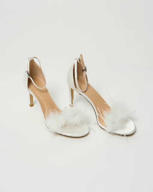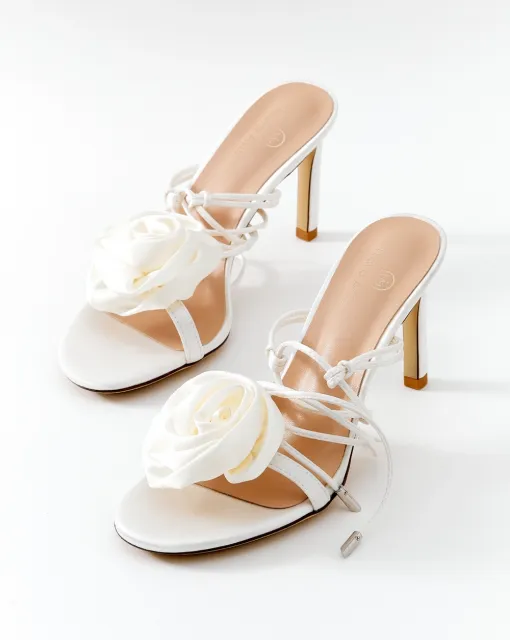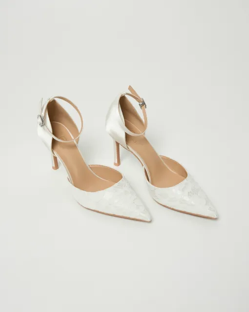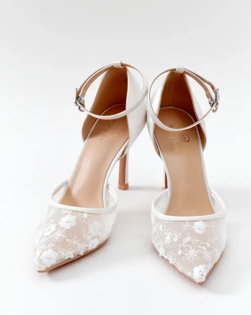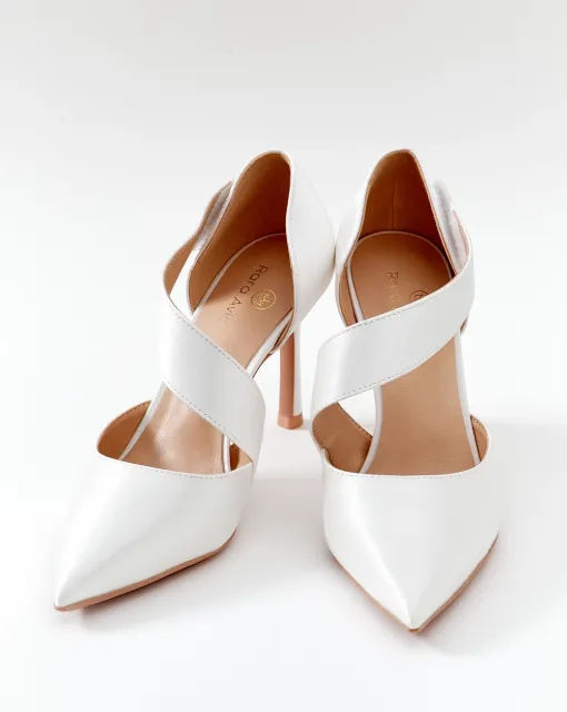 Лодочки в молочном цвете с украшенным бисером декоративным бантом из органзы на носике. Верх туфель выполнен из сатина, внутренняя часть – из кожи.