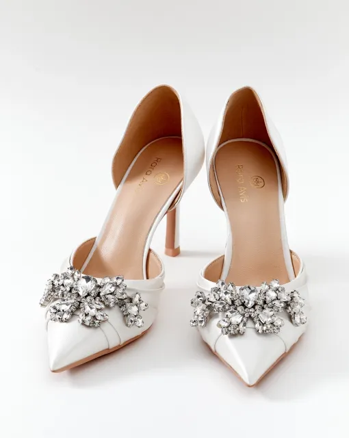 Классические лодочки белого цвета на высоком каблуке. Пятка украшена большим бантом из сатина. Модель представлена в белом и черном цвете.