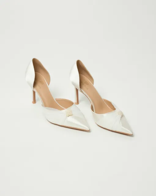 Босоножки на высокой шпильке. Ремешок вокруг лодыжки надежно фиксирует ногу. Декор из страз напоминает кристаллы и служит ярким акцентом. Модель представлена в белом и черном цвете.