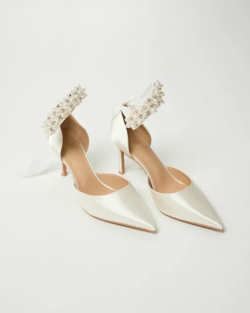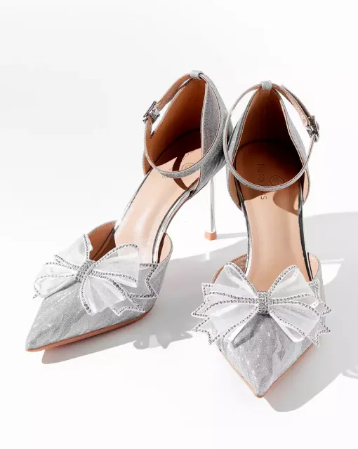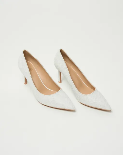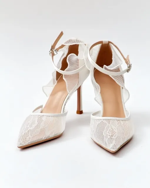 Туфли-лодочки на шпильке, с острым носом и закрытой пяткой. Верх полностью выполнен из прозрачной сетки с акцентным кружевным узором.
