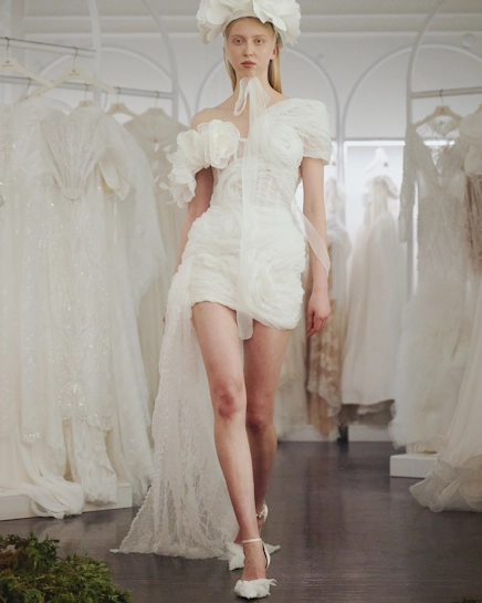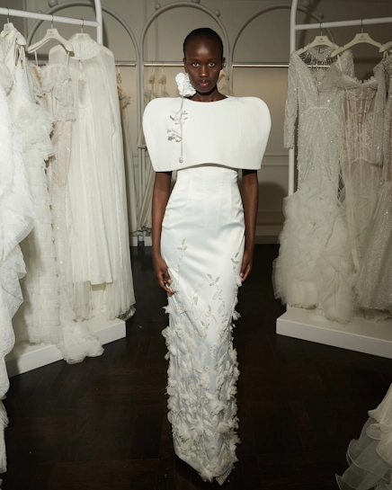 В центре внимания — изящная работа с фактурами и силуэтами. Лёгкий шёлк, воздушные ткани и флористические декоративные элементы делают каждое платье частью настоящей весенней истории, где женственность раскрывается через движение, свет и детали.