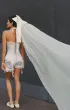 Фата с длинным шлейфом, закреплённая на объёмный шёлковый бант. Минимализм ткани подчёркивает красоту драпировки.