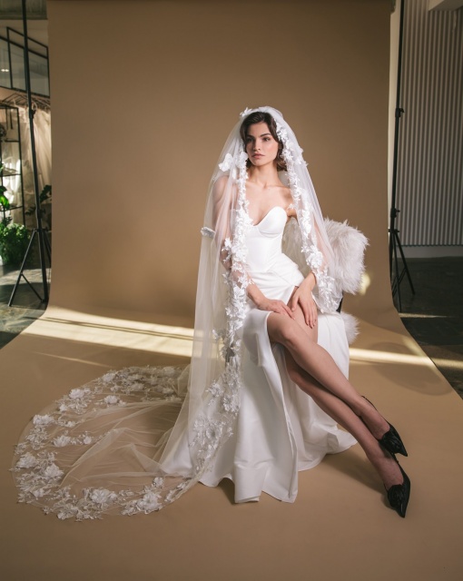 Минималистичная фата без декора. Чистые линии, лёгкий тюль и универсальность для современного bridal-стиля.