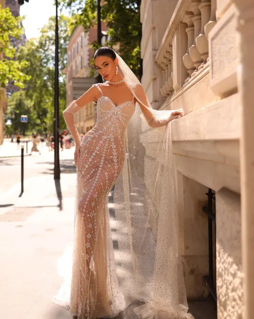 Длинная фата с ультрапышной тюлевой оборкой по краю. Объёмная, графичная и выразительная, она создаёт эффект движения и драматичный bridal-силуэт. Подходит для церемоний, съёмок и fashion-выходов.
