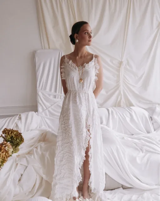 Корсетный лиф и трусики из кружева-шантильи с пайетками. Регулируемые боковины лифа и цветочные аппликации ручной работы делают комплект универсальным и выразительным.