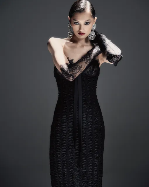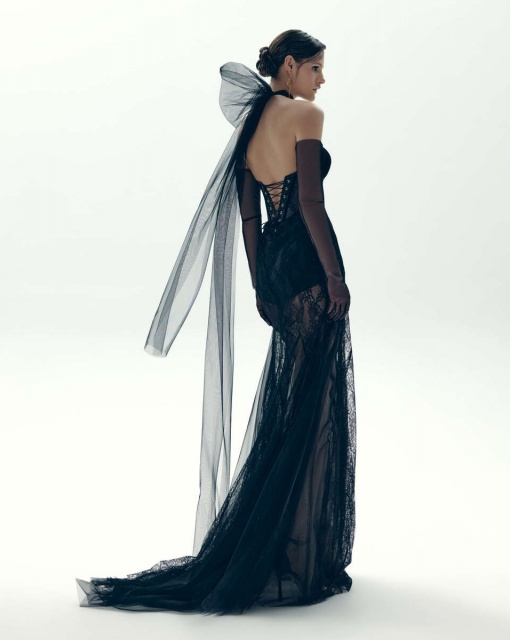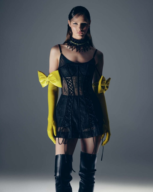 Набор из удлинённого жакета и кружевного комбинезона — стильное решение для вечера. Жакет со шнуровкой позволяет регулировать посадку, а мягкий корсет в кружевном комбинезоне гарантирует комфорт. Можно носить комбинезон отдельно с бархатными шортами или в комплекте с жакетом.